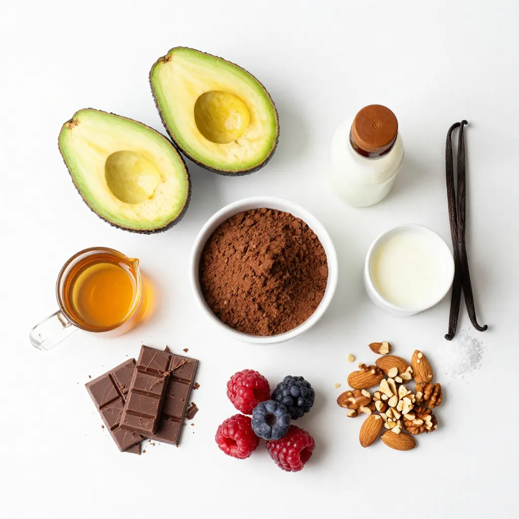 Each ingredient plays a key role. The avocados give the mousse its creamy base. Cocoa powder brings rich chocolate flavor. Maple syrup or agave adds sweet notes. Almond milk keeps the texture light. Vanilla extract enhances the taste, while sea salt balances the sweetness.
